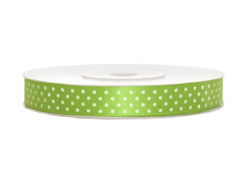 12 mm széles pöttyös szatén szalag (25 m) – élénk fűzöld