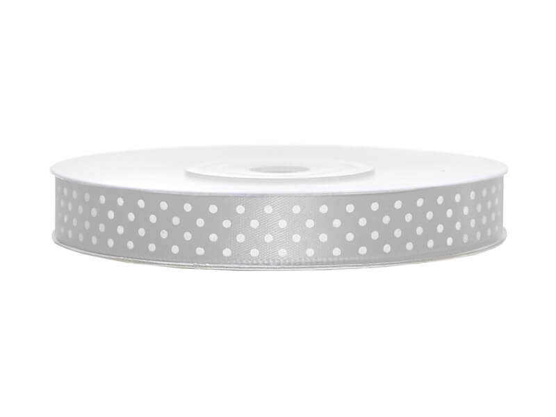12 mm széles pöttyös szatén szalag (25 m) - ezüst