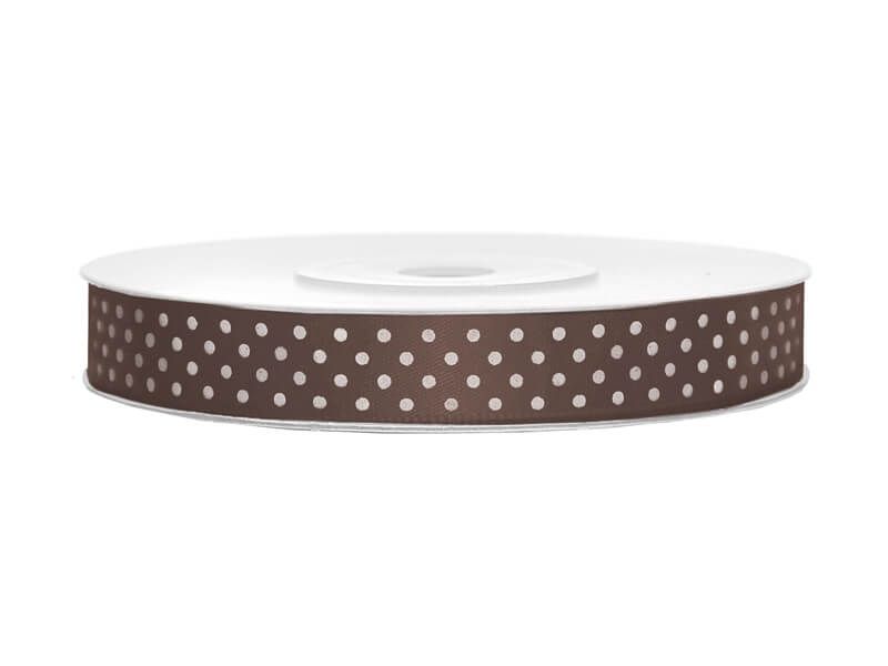 12 mm széles pöttyös szatén szalag (25 m) – kávébarna
