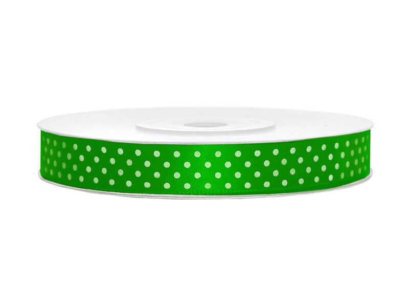 12 mm széles pöttyös szatén szalag (25 m) – smaragdzöld