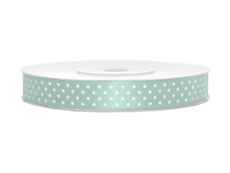 12 mm széles pöttyös szatén szalag (25 m) - világos menta