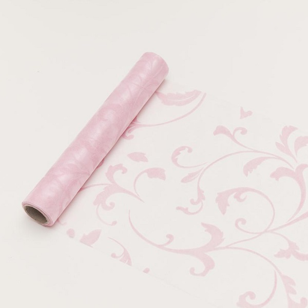 23,5 cm széles inda mintás organza futó (5 m) - rózsaszín