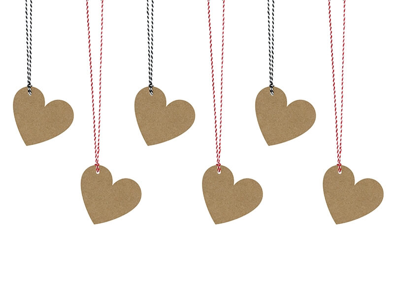 | Szív alakú ajándékcímke, piros-fehér és fekete-fehér zsinórral. A csomag 6 db címkét tartalmaz. | |
