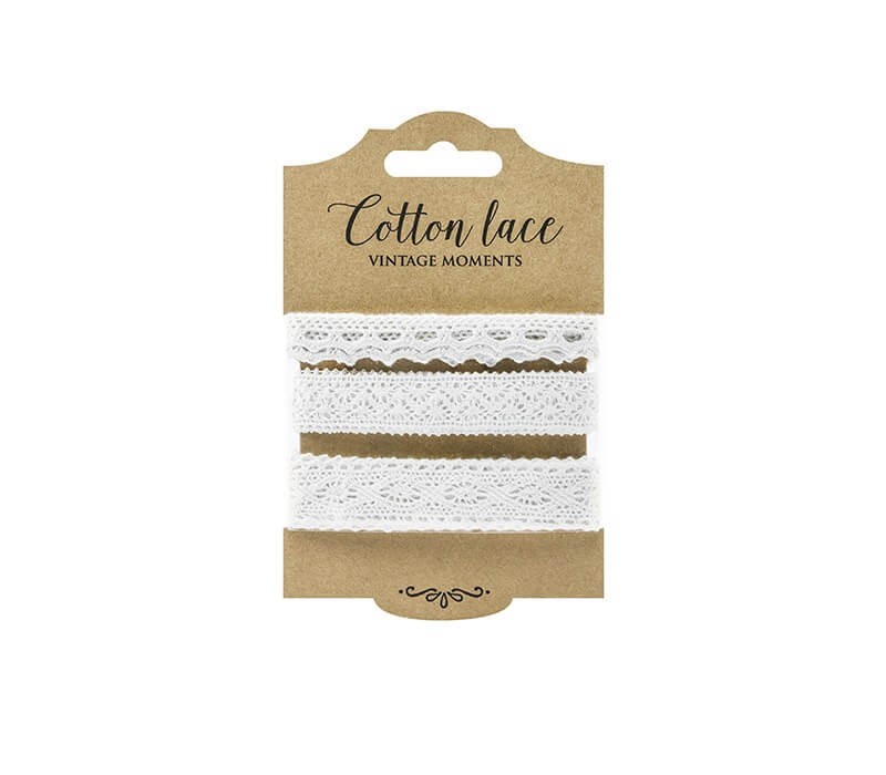 | Fehér színű, pamut csipke szalag készlet, 3 különböző szalaggal. | |