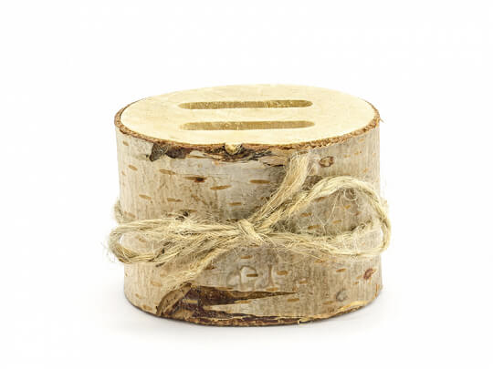 Rusztikus stílusú, fából készült gyűrűtartó. |