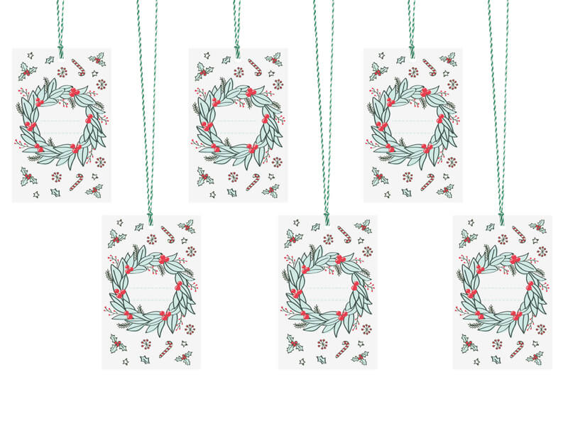 karácsonyi ajándékcímke (6 db/cs) - koszorú