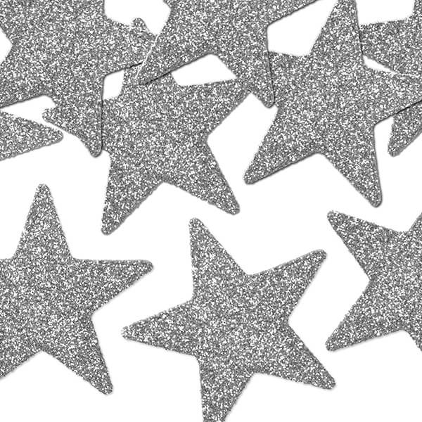 Ezüst színű, csillag alakú karácsonyi dekoráció, 8 darabos csomagolásban.