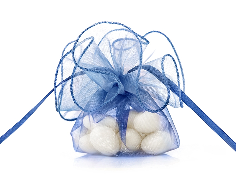 Organza tasak, ideális csomagolás bármilyen apró ajándékhoz. (A tasak tartalma a képen csak illusztráció.)