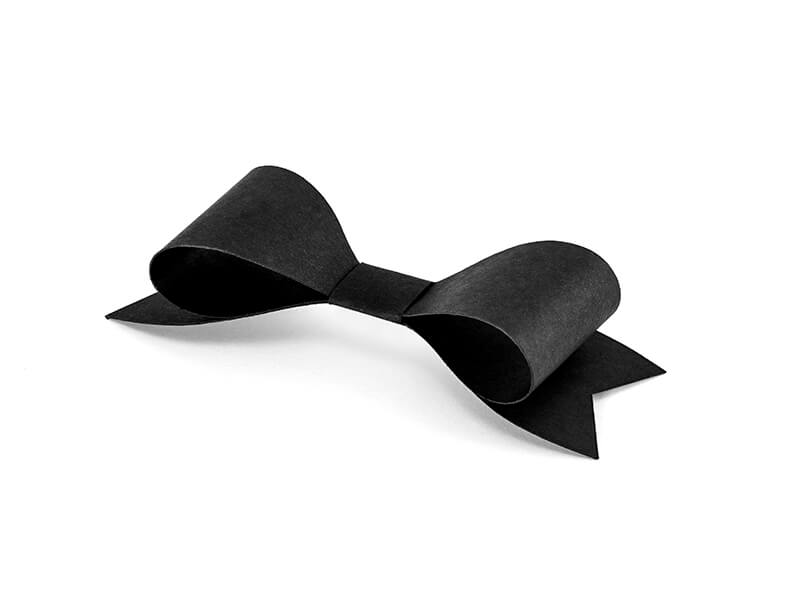 | Fekete színű papír masni. A csomag 6 db masnihoz való papírt tartalmaz, amit az útmutató alapján össze kell hajtogatni. | |