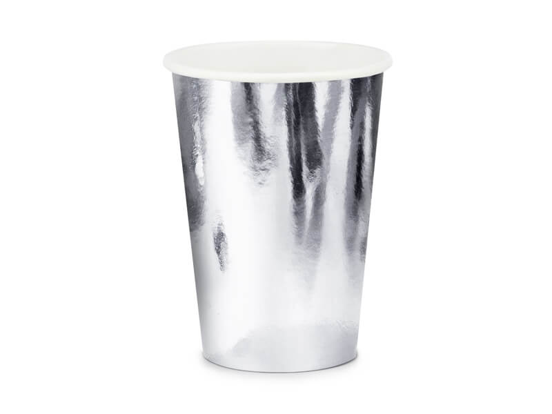 Ezüst színű papír pohár, 6 darabos csomagolásban. |