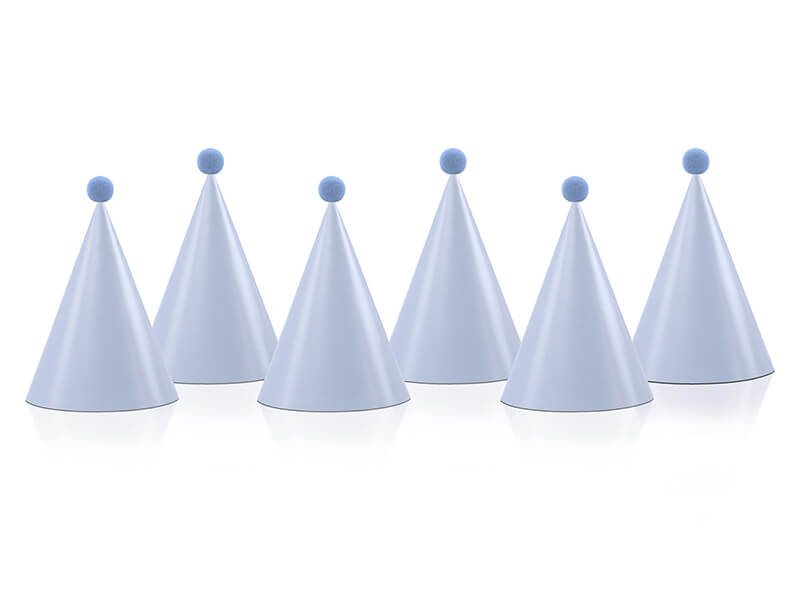 Kék színű parti kalapok, 6 darabos csomagolásban.