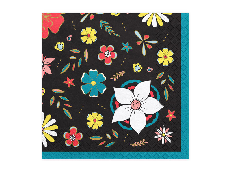 Fekete alapon virág mintás, 3 rétegű szalvéta.