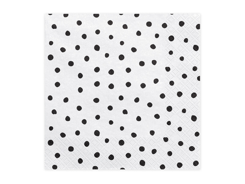 Fehér alapon fekete pöttyös, 3 rétegű szalvéta. |