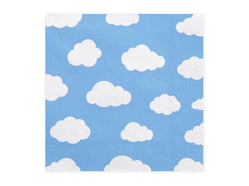 Kék alapon fehér felhő mintás, 3 rétegű szalvéta. |