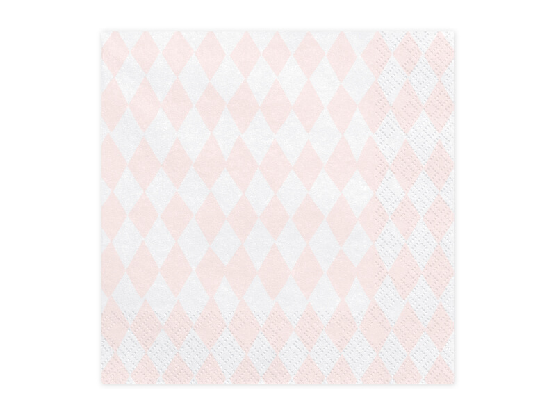 Fehér alapon rózsaszín kockás, 3 rétegű szalvéta. |