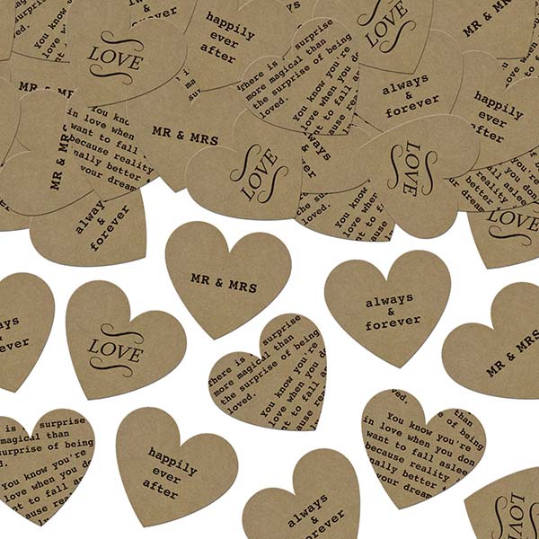 Szív alakú konfetti romantikus feliratokkal. A csomag 3 g konfettit tartalmaz.