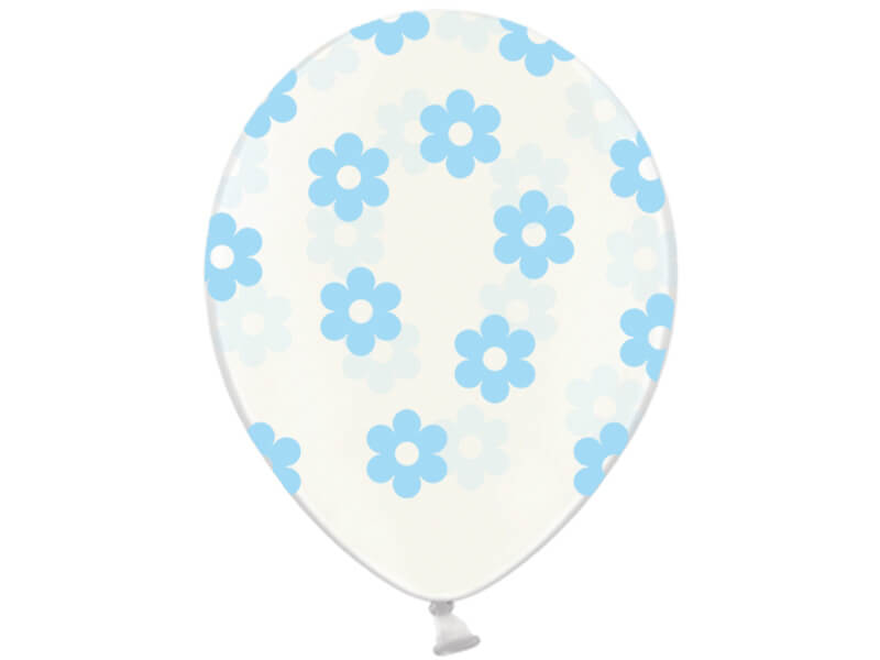Fehér alapon világoskék virág mintás lufi.